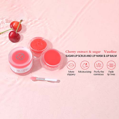 I love this combo! The cherry scrub gently removes dead skin, and the lip mask makes my lips so soft. The lip balm keeps them moisturized all day. Smells divine too! đ
