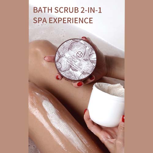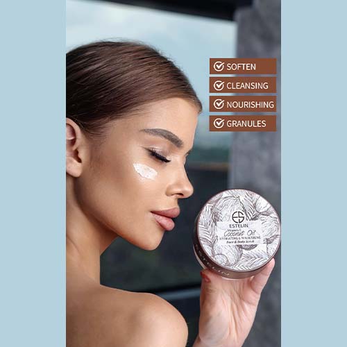 This gentle, exfoliating & nourishing scrub buffs away dead skin and dirt while it moisturizes. Its lavish, velvety texture infused with virgin coconut oil, vitamin E a luscious blend while a delicate blend of oils and nutrients cleanse & nourish your skin keeping it healthy and radiant that leaves skin feeling soft, smooth and hydrated