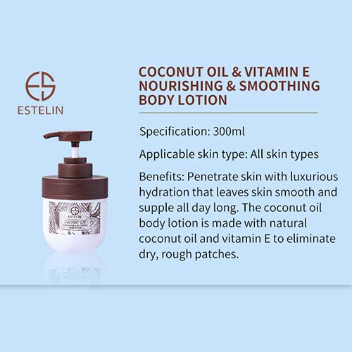 Penetrate skin with luxurious hydration that leaves skin smooth and supple all day long. The coconut oil body lotion is made with natural coconut oil and vitamin E to eliminate dry, rough patches. These raw natural ingredients deliver luxuriously rich moisturization for decadently pampered skin.