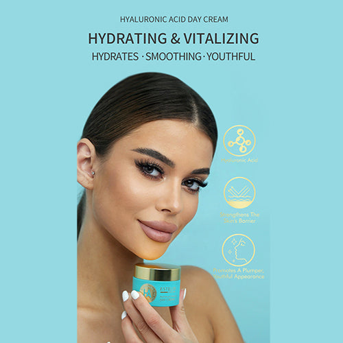 This ultra-hydrating day cream thoroughly moisturizes and plumps facial skin to reduce the look of fine lines and wrinkles as it rehydrates, smooths and softens dry aging skin. Formula with boosted levels of hyaluronic acid, e powerful hydrating ingredient naturally found in the skin, and vitamin B5 binds water on the skin’s surface to help intensely moisturize dull, dehydrated skin.