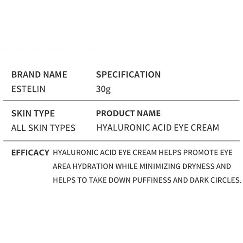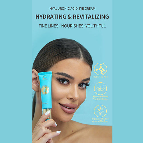 Hyaluronic acid eye cream helps promote eye area hydration while minimizing dryness and helps to take down purness and dark circles. Plump up fired eyes with the most nourishing and balancing blend of advanced ingredients, including hyaluronic acid and vitamin B5 to help enhance complexion for a youthful appearance and a luminous glow.