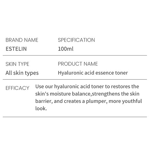 Use our hyaluronic acid toner to restores the skin’s moisture balance, strengthens the skin barrier, and creates a plumper, more youthful look. The hydrating formula will be absorbed deeply through the layer of skin in seconds without clogging pores or heavy feeling. Use it daily on a cleansed, damp facial skin and enjoy the effect of reduced fine lines and wrinkles, and restored elasticity.