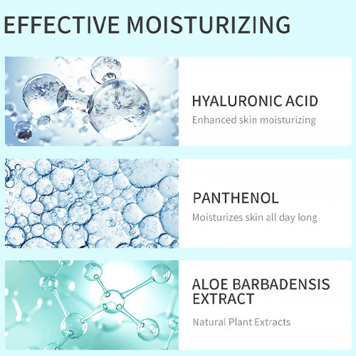 Aqua, glycerin, propylene glycol, aloe barbadensis extract, phenoxyethanol, panthenol, chlorphenesin, arginine, carbomer, allantoin, disodium edta, 1,2-hexanediol, sodium hyaluronate, peg-40 hydrogenated castor oil, polyglutamic acid, parfum, citric acid.